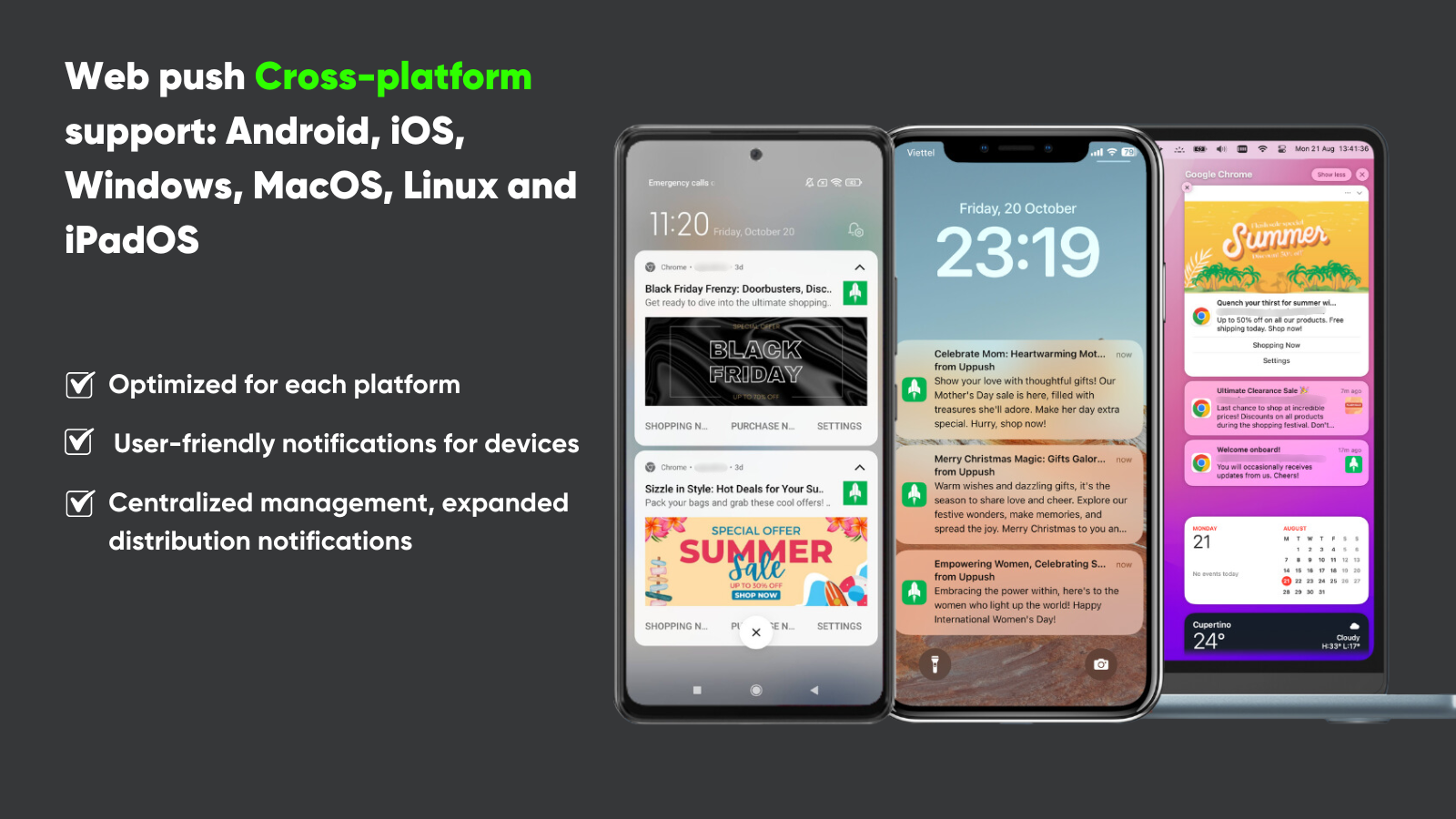 Why chase customers when you can have web push notifications do the work for you? Uppush’s event-based automation means you can set it and forget it – your customers get notified exactly when they need to